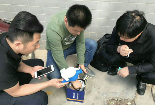 签约仪式之后,竞达技术服务人员会同西安电信技术人员,来到竞达NB-IOT水表的安装现场进行通信及开关阀门测试。